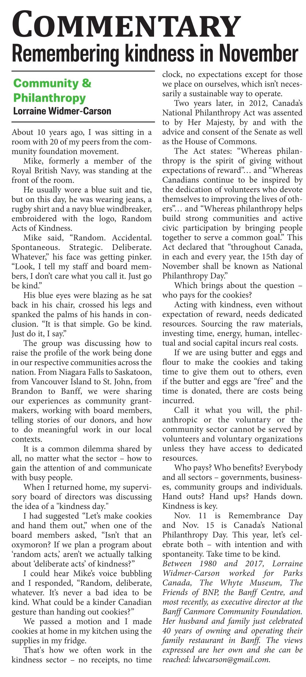 November 11 is Remembrance Day and November 15 is Canada’s National Philanthropy Day. This year let’s celebrate both remembering and being kind with intention and with spontaneity.